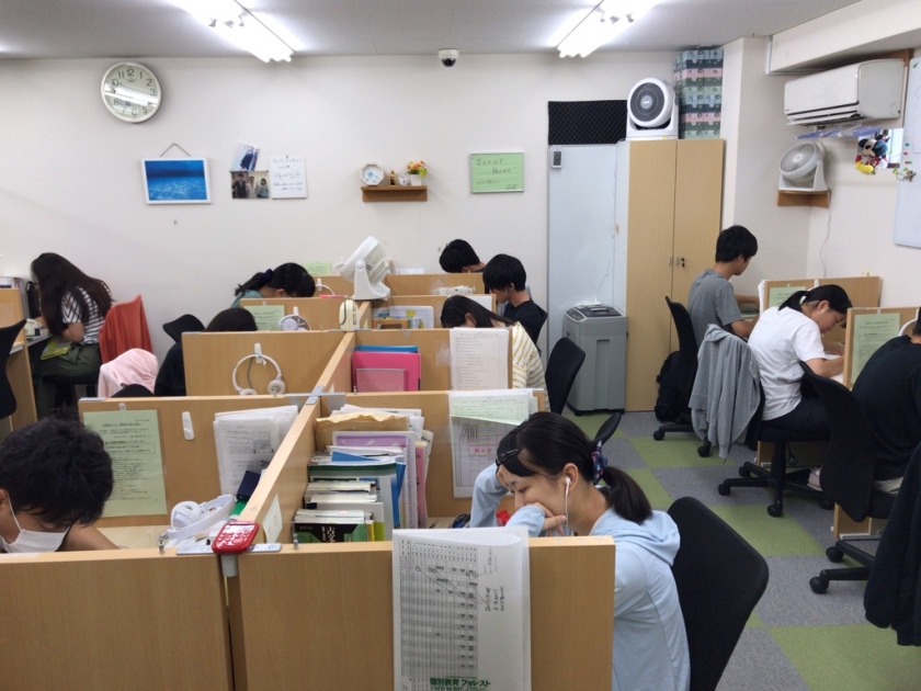 高3生は夏休みの間、フォレスト恒例の「平日10時〜22時、土日10時〜19時」にて毎日通塾しております。大学受験が年々難化している中、志望校に合格できるように必死に頑張っています!