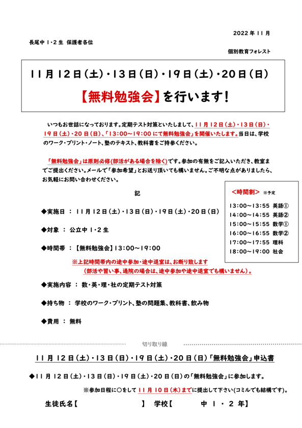 無料勉強会のお知らせ(長尾中対象)