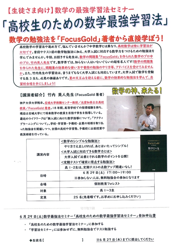 【高1・2生対象セミナー】高校生のための数学最強学習法(6月29日開催)